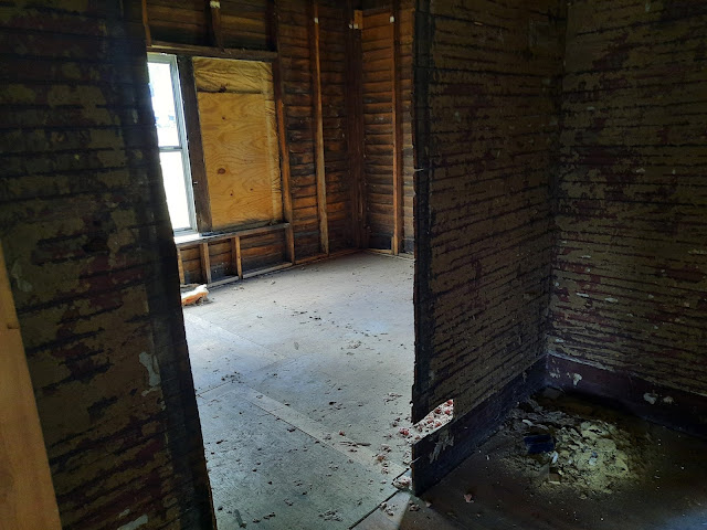 There's Hick's buddy, framing the wall that will have the sliding door. The opposite wall of the hallway hasn't been built yet, but there's the back door.